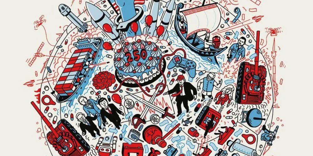 2. There is a cargo ship with a black flag flying with cannons (that shouldn’t be on a cargo ship), one of which fires a round at the cake marking the 250 year anniversary of the USA. July 4, 2026 is right in the middle of the World Cup.